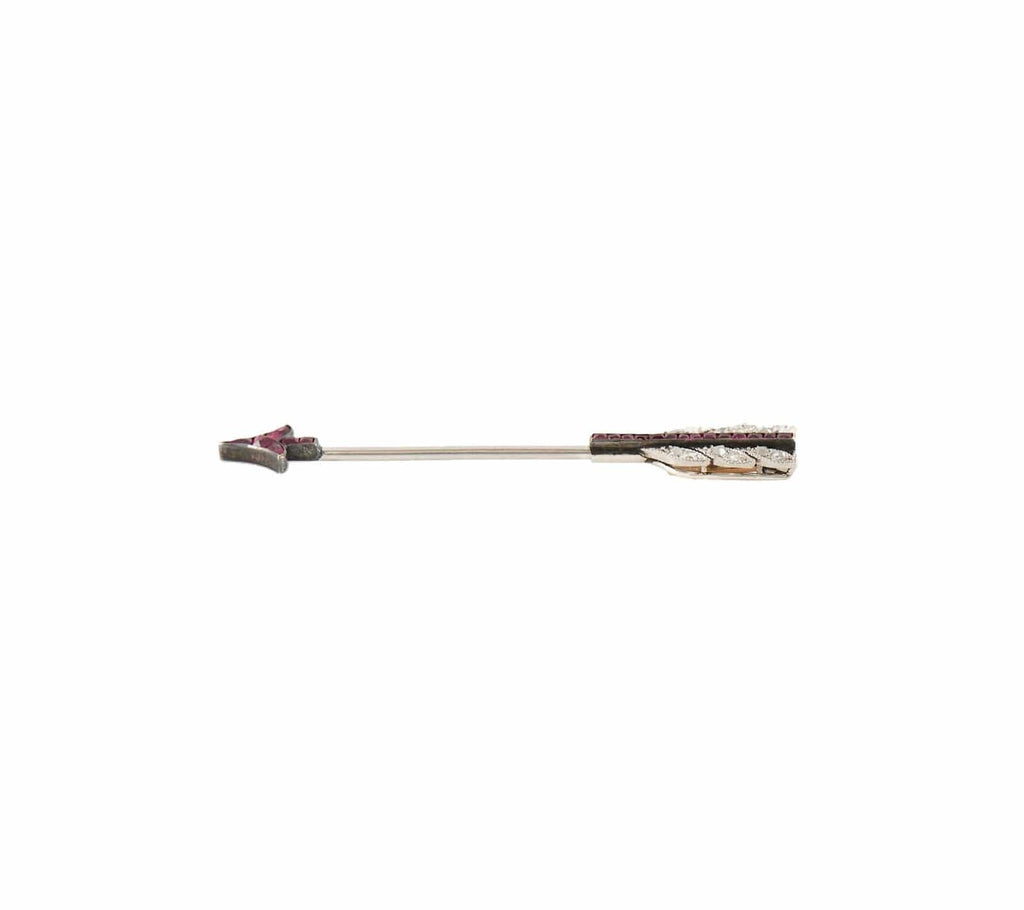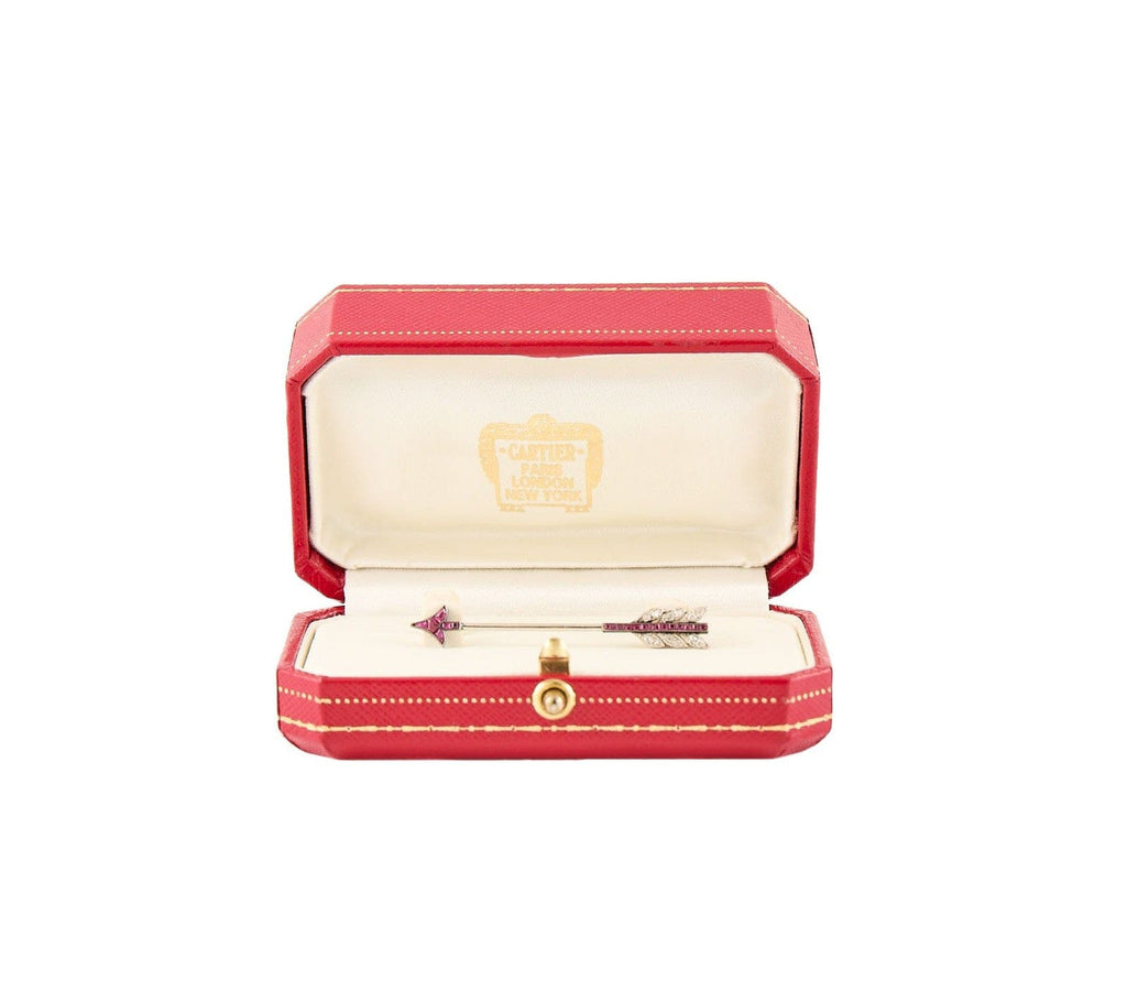 Vintage Cartier Ruby and 0.15ctw Diamond Art Deco Jabot Brooch in Platinum W/Box