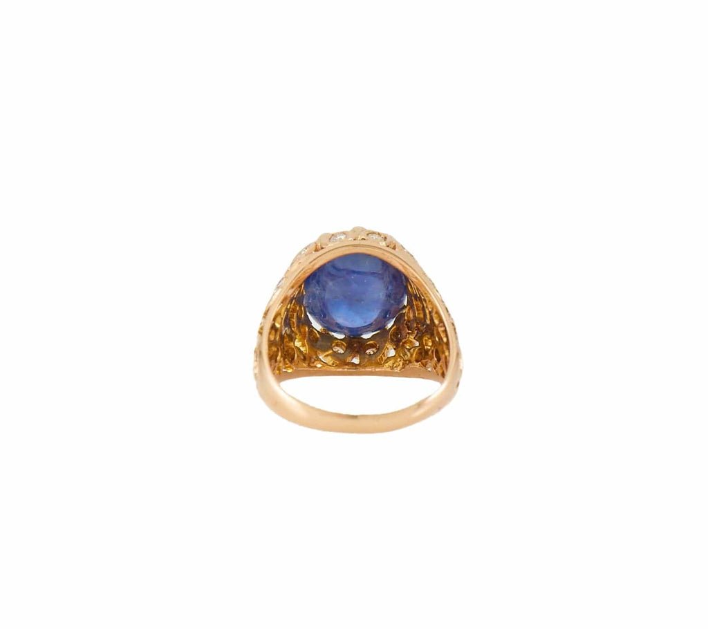 Vintage Oval Sapphire Cabochon and 0.50ctw Diamond Statement Ring in 14K