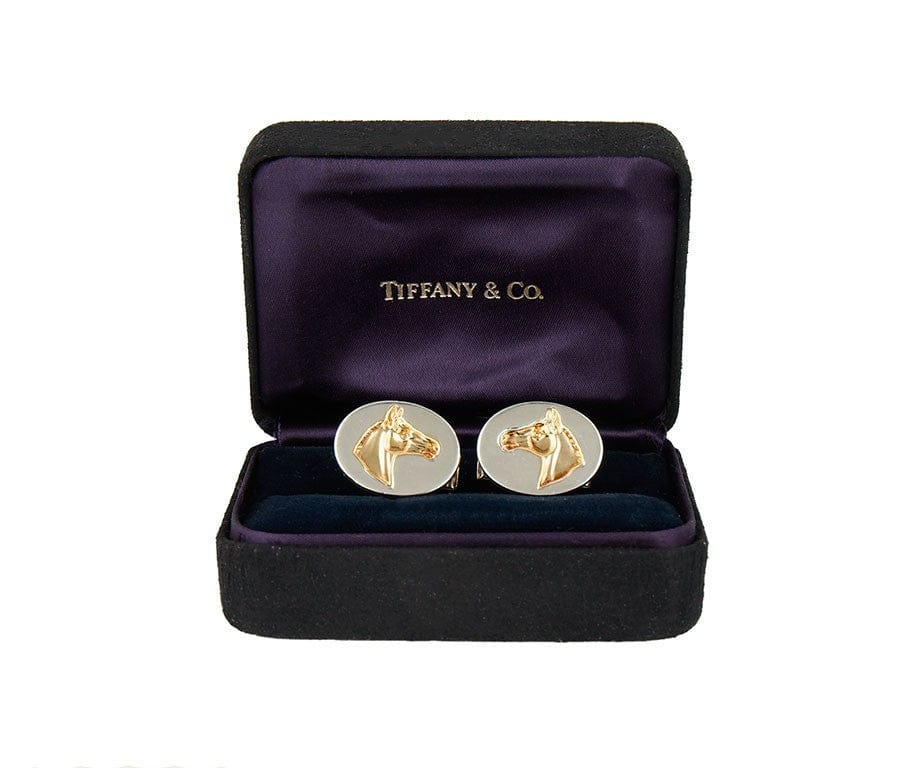 Vintage Tiffany & Co. Two Tone Horse Cufflinks in 18K and Sterling W/Box