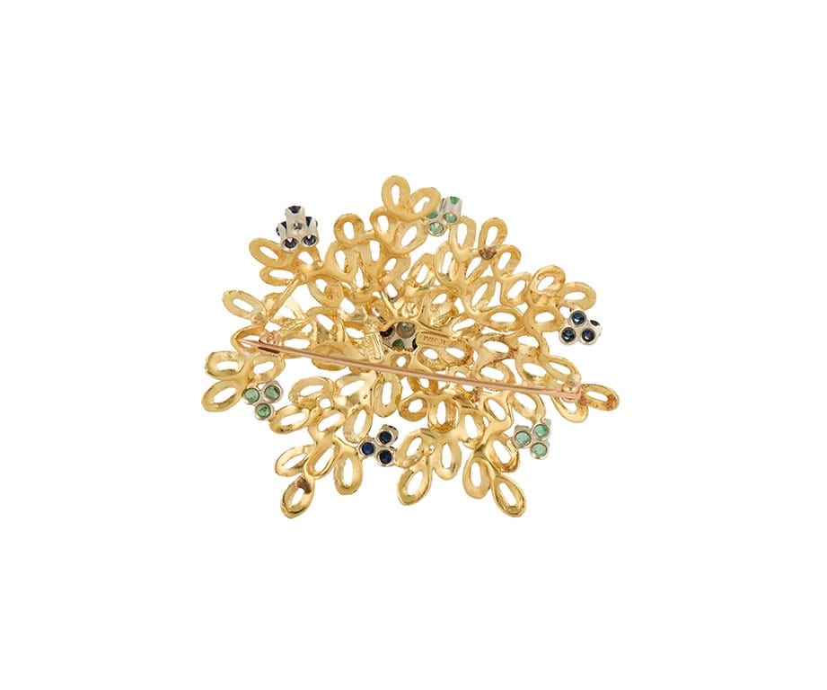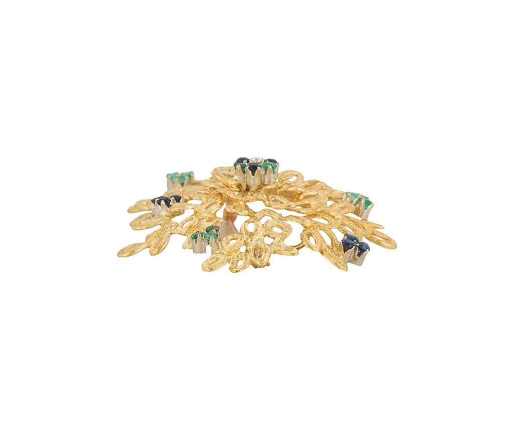 Vintage Toliro Emerald Sapphire and Diamond Brooch in 18K
