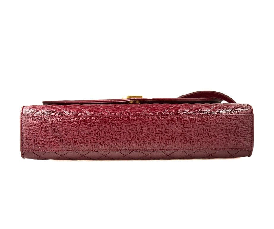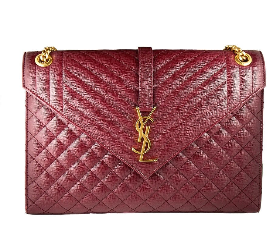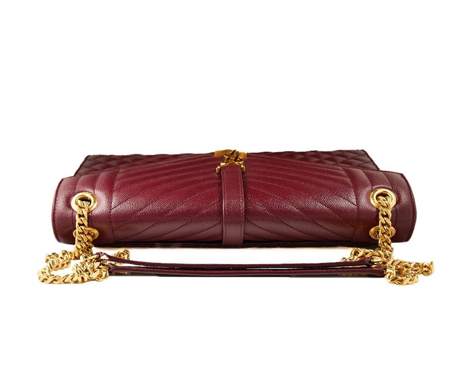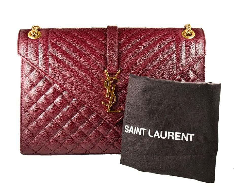 YSL Rouge Cabernet Medium Envelope Grain de Poudre Leather Handbag W/Dustbag