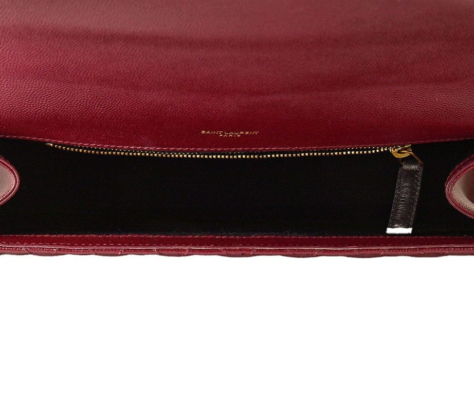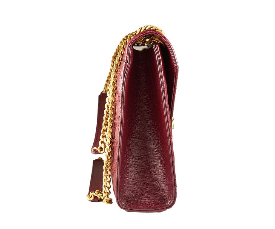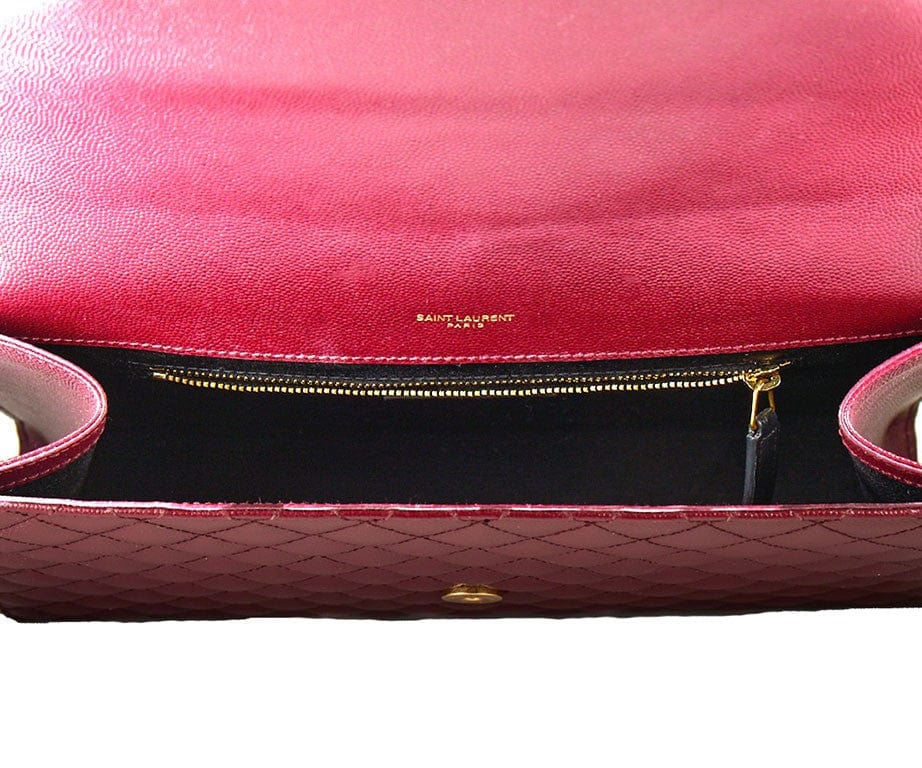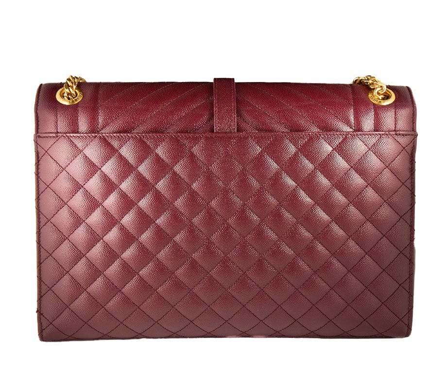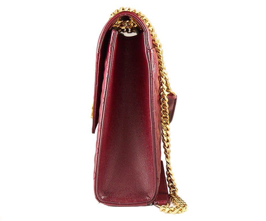 YSL Rouge Cabernet Medium Envelope Grain de Poudre Leather Handbag W/Dustbag
